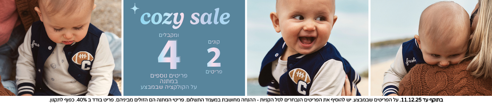 var widgetOptions = { apiKey: "035e97be-b3e9-42af-9165-eaa6bd1c579e", snippetId: "d506da47c74cb1921957" }; (function (n) { var u = function () { GlassixWidgetClient && typeof GlassixWidgetClient == "function" ? (window.widgetClient = new GlassixWidgetClient(n), widgetClient.attach(), window.glassixWidgetScriptLoaded && window.glassixWidgetScriptLoaded()) : f() }, f = function () { r.onload = u; r.src = "https://cdn.glassix.net/clients/widget.1.2.min.js"; i.parentNode.removeChild(t); i.parentNode.insertBefore(r, i) }, i = document.getElementsByTagName("script")[0], t = document.createElement("script"), r; (t.async = !0, t.type = "text/javascript", t.crossorigin = "anonymous", t.id = "glassix-widget-script", r = t.cloneNode(), t.onload = u, t.src = "https://cdn.glassix.com/clients/widget.1.2.min.js", !document.getElementById(t.id) && document.body) && (i.parentNode.insertBefore(t, i), t.onerror = f) })(widgetOptions) window.interdeal = { "sitekey": "13e8058b9fdc91c7d185f3ed998b3226", "Position": "Left", "Menulang": "HE", "domains" : { "js": "https://js.nagich.co.il/", "acc": "https://access.nagich.co.il/" }, "btnStyle": { "vPosition": [ "80%", null ], "scale": [ "0.6", "0.6" ], "icon": { "type": 11, "shape": "circle", "outline": true } } }; (function(doc, head, body){ var coreCall = doc.createElement('script'); coreCall.src = interdeal.domains.js + 'core/4.5.7/accessibility.js'; coreCall.defer = true; coreCall.integrity = 'sha512-gpqKsoeiydxhKkTxKWIuaBa2ecvqnbbrt714imvpTPiFl1hGlfoU2MlGypZqZZR8ddeQE1sJeXfMZ9XECRTo3Q=='; coreCall.crossOrigin = 'anonymous'; coreCall.setAttribute('data-cfasync', true ); body? body.appendChild(coreCall) : head.appendChild(coreCall); })(document, document.head, document.body); (function(doc, head, body){ var s = doc.createElement("script"); s.src = "https://ajax.googleapis.com/ajax/libs/jquery/3.6.3/jquery.min.js"; s.defer = true; body? body.appendChild(s) : head.appendChild(s); })(document, document.head, document.body); (function(doc, head, body){ var s = doc.createElement("script"); s.src = "https://cloudfront.barilliance.com/cartersoshkosh.co.il/cbar.js.php"; s.defer = true; body? body.appendChild(s) : head.appendChild(s); })(document, document.head, document.body);