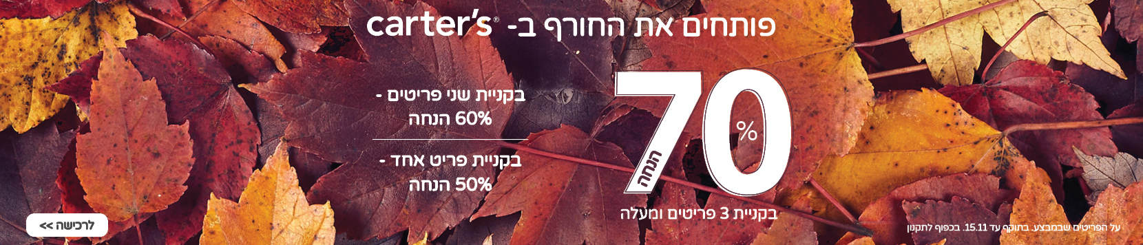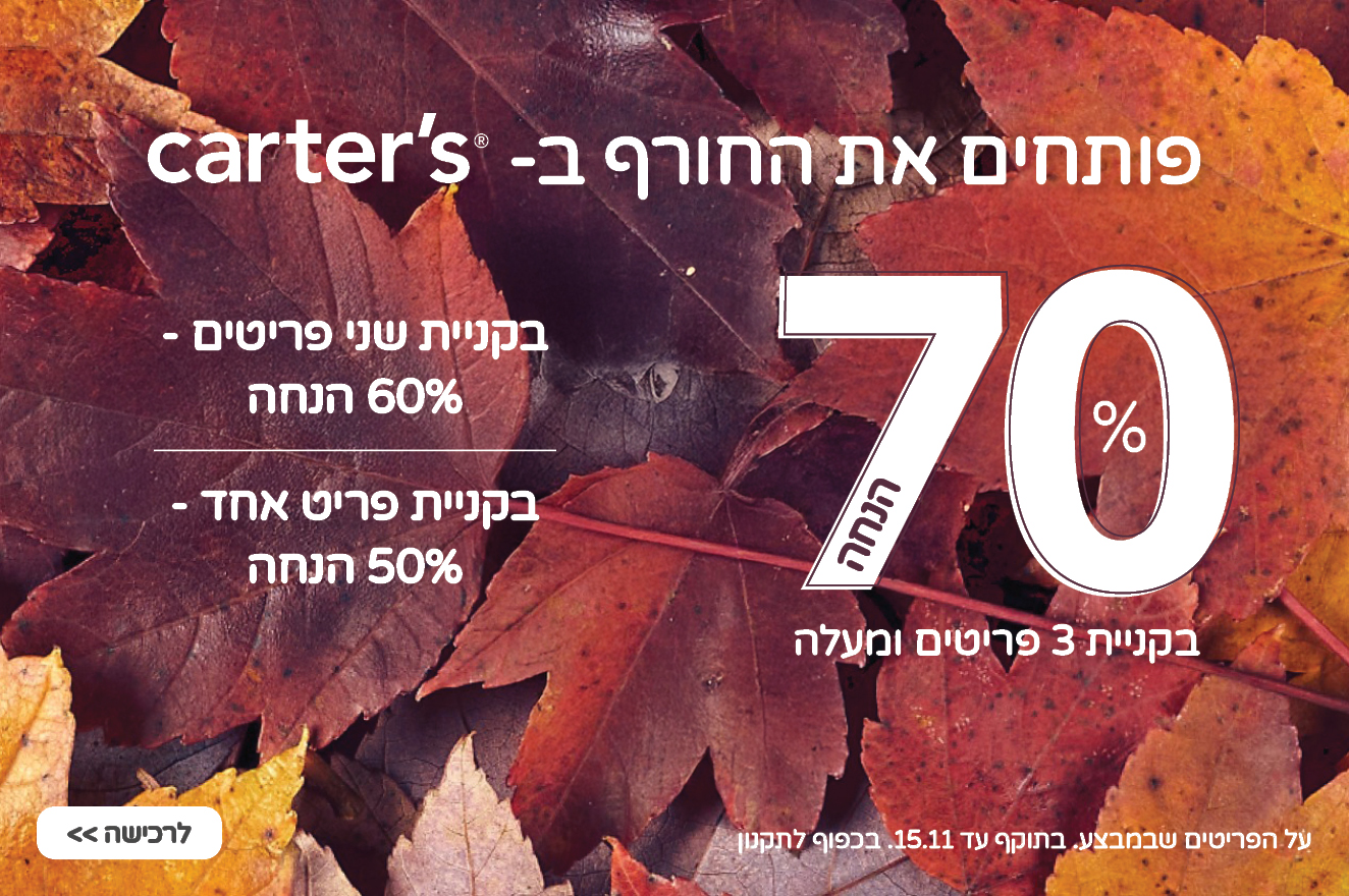 var widgetOptions = { apiKey: "035e97be-b3e9-42af-9165-eaa6bd1c579e", snippetId: "d506da47c74cb1921957" }; (function (n) { var u = function () { GlassixWidgetClient && typeof GlassixWidgetClient == "function" ? (window.widgetClient = new GlassixWidgetClient(n), widgetClient.attach(), window.glassixWidgetScriptLoaded && window.glassixWidgetScriptLoaded()) : f() }, f = function () { r.onload = u; r.src = "https://cdn.glassix.net/clients/widget.1.2.min.js"; i.parentNode.removeChild(t); i.parentNode.insertBefore(r, i) }, i = document.getElementsByTagName("script")[0], t = document.createElement("script"), r; (t.async = !0, t.type = "text/javascript", t.crossorigin = "anonymous", t.id = "glassix-widget-script", r = t.cloneNode(), t.onload = u, t.src = "https://cdn.glassix.com/clients/widget.1.2.min.js", !document.getElementById(t.id) && document.body) && (i.parentNode.insertBefore(t, i), t.onerror = f) })(widgetOptions) window.interdeal = { "sitekey": "13e8058b9fdc91c7d185f3ed998b3226", "Position": "Left", "Menulang": "HE", "domains" : { "js": "https://js.nagich.co.il/", "acc": "https://access.nagich.co.il/" }, "btnStyle": { "vPosition": [ "80%", null ], "scale": [ "0.6", "0.6" ], "icon": { "type": 11, "shape": "circle", "outline": true } } }; (function(doc, head, body){ var coreCall = doc.createElement('script'); coreCall.src = interdeal.domains.js + 'core/4.5.7/accessibility.js'; coreCall.defer = true; coreCall.integrity = 'sha512-gpqKsoeiydxhKkTxKWIuaBa2ecvqnbbrt714imvpTPiFl1hGlfoU2MlGypZqZZR8ddeQE1sJeXfMZ9XECRTo3Q=='; coreCall.crossOrigin = 'anonymous'; coreCall.setAttribute('data-cfasync', true ); body? body.appendChild(coreCall) : head.appendChild(coreCall); })(document, document.head, document.body); (function(doc, head, body){ var s = doc.createElement("script"); s.src = "https://ajax.googleapis.com/ajax/libs/jquery/3.6.3/jquery.min.js"; s.defer = true; body? body.appendChild(s) : head.appendChild(s); })(document, document.head, document.body); (function(doc, head, body){ var s = doc.createElement("script"); s.src = "https://cloudfront.barilliance.com/cartersoshkosh.co.il/cbar.js.php"; s.defer = true; body? body.appendChild(s) : head.appendChild(s); })(document, document.head, document.body);