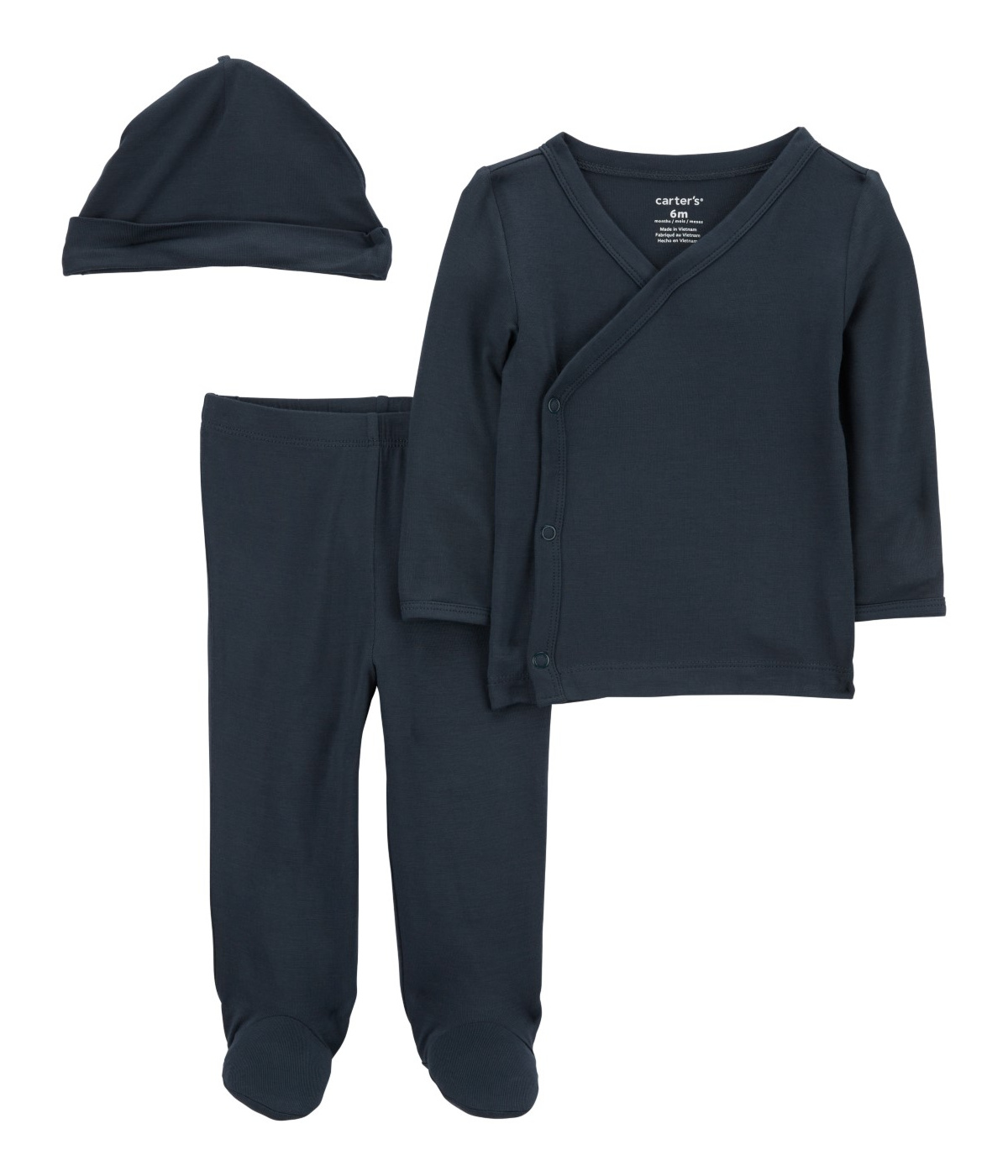 סט ויסקו-אלסטן מושלם ליום הראשון שלך תינוקך! מארז שלושה חלקים שיהפכו לאהובים ביותר על כל התינוקות: חולצת מעטפת ללבישה נוחה ומהירה, מכנסי רגליות תואמים וכובע מחמם- מתנה מושלמת לתינוק החדש!.