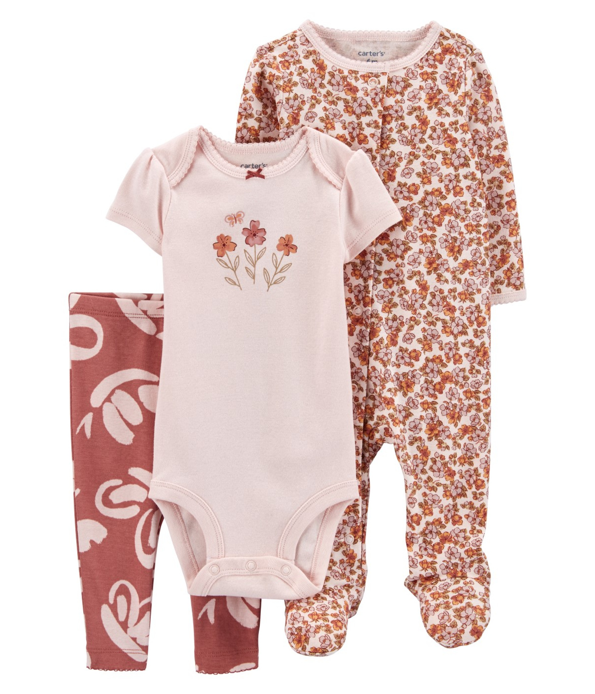 לשעת משחק וגם לשעות הלילה, הסט המושלם לתינוקות שיעטוף באהבה את התינוקת: בגד גוף קצר מכותנה מלטפת, אוברול ארוך ומכנסי טייץ, בדפוסי פרחים מתוק.