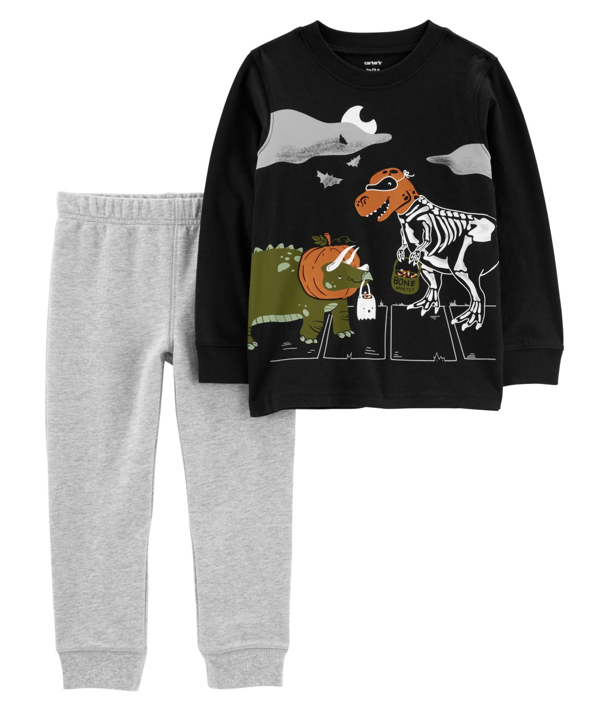 סט שני חלקים הכולל חולצה בדפוס דינוזאורים בשילוב מכנסיים תואמים -למשחק לכל אורך היום!