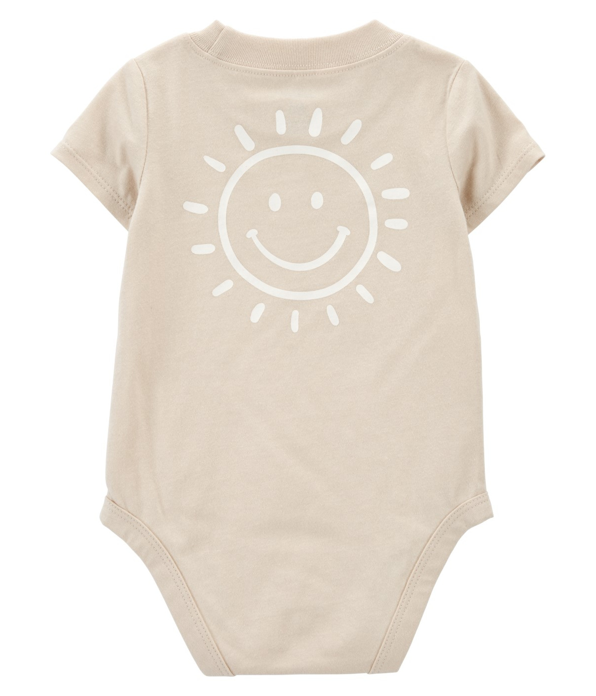 בגד גוף קצר לתינוקות, עשוי כותנה רכה ומלטפת, בדפוס שמש חייכנית ובגזרה נוחה במיוחד. מתאים לשילוב כיפי וקליל עם מכנסיים, ולהחלפה נוחה ומהירה.