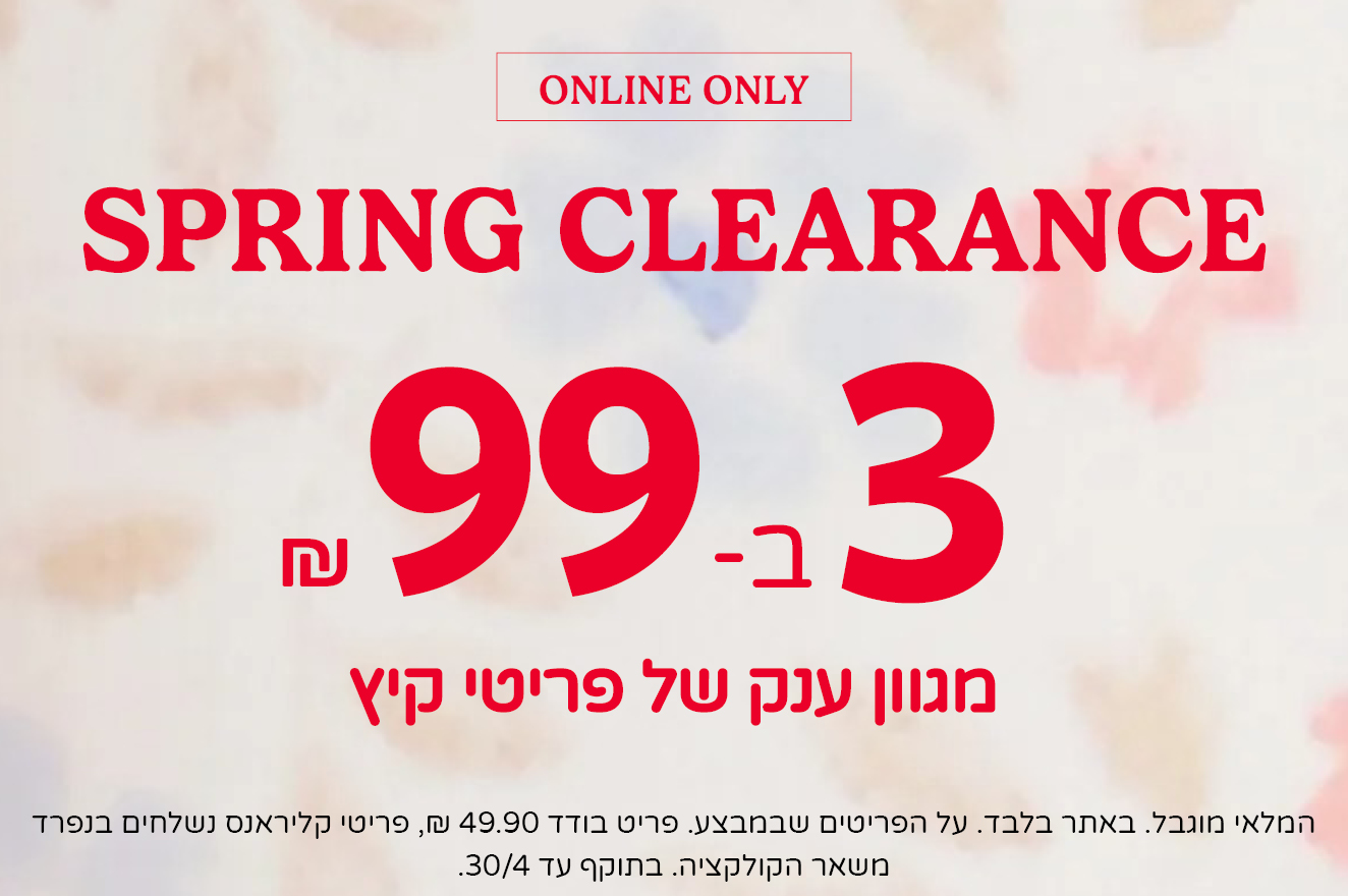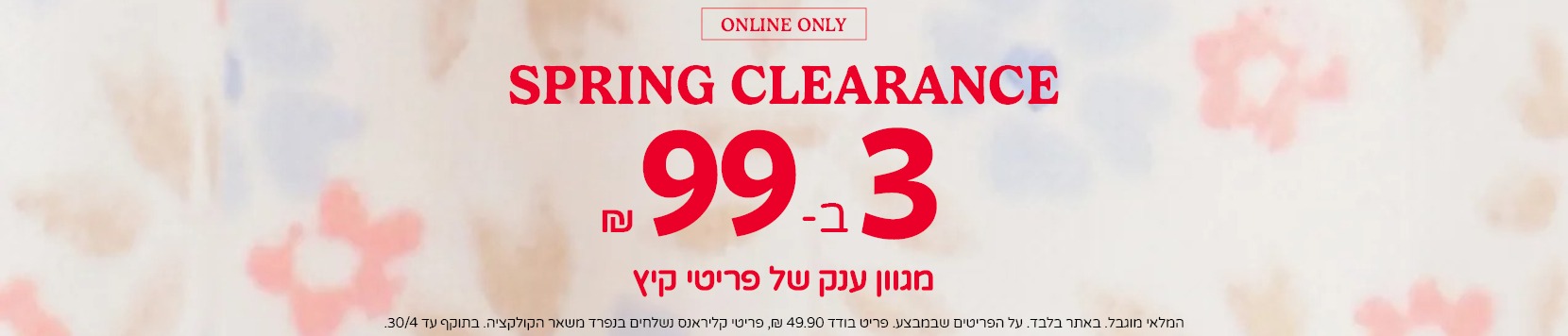 יום אחרון למבצע! CLEARANCE SALE - ONLINE ONLY