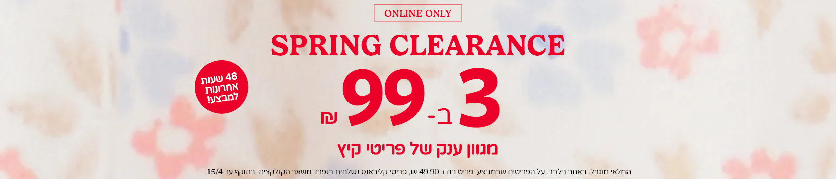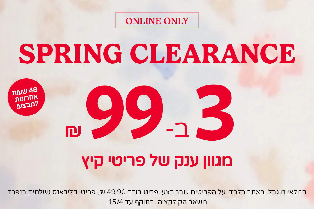 יום אחרון למבצע! CLEARANCE SALE - ONLINE ONLY